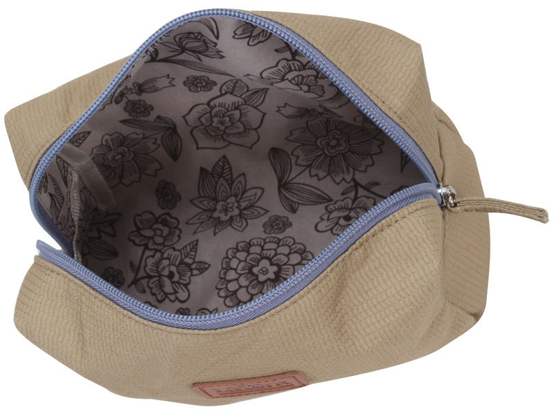此款化妆包选用优质涤纶面料,里布是210D,可装各种化妆品及化妆工具,还可放置数码配件、手机、零钱等小件,有深灰、金色和海军蓝三种颜色可供客户挑选。